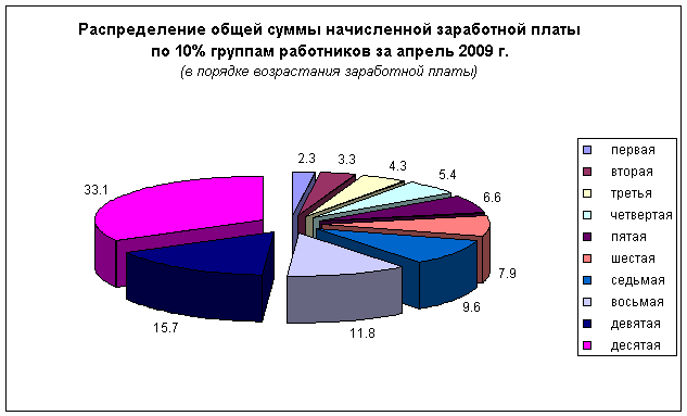 по 10-ти процентным группам работников за апрель 2009 г.