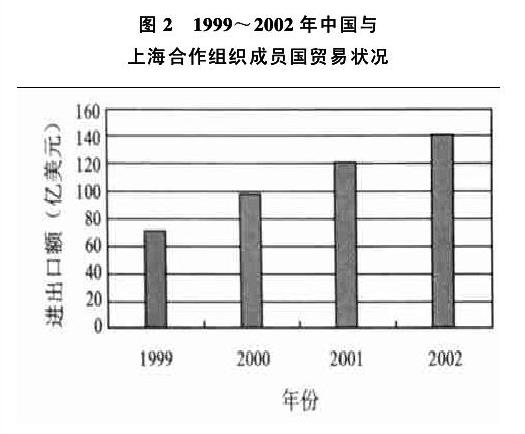 各国贸易的增长为扩大区域内贸易创造了有利条件。据中国海关统计,1999~2002年中国与上海合作组织其他各成员国的贸易额呈大幅上涨走势。