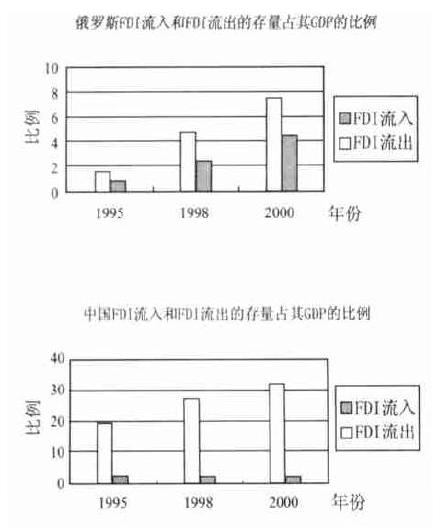 从表9-3中可以看出,中国与上海合作组织成员国间的相互投资额总计不足13亿美元。其主要原因在于,该组织的各成员国均处在经济体制转轨时期,各国在调整经济结构、推动经济发展过程中都需要大量投资,资金短缺是制约各国经济发展的一大瓶颈,为此各国政府均将吸引外资作为主要的经济政策,在这方面各国的需求是共同的,并带有一定的竞争性(从表9-1中可以看出)。就经济实力而言,中亚各国基本不具备对外投资能力(从表9-2中可以看出)。中俄两国为该组织中的大国,理应成为该地区投资的主角,但受自身经济发展水平的制约,俄罗斯还未进入对外投资的发展阶段。中国在该组织中虽然经济实力最强,并已开始实施“走出去”战略,但仍处在对外 投资的初期阶段,还不具备大规模对外投资的能力和经验。根据2002年《世界投资报告》提供的数据计算,中俄两国吸引外资(FDI流入)的水平大大高于其对外投资(FDI流出)的水平,中国表现得尤为明显。