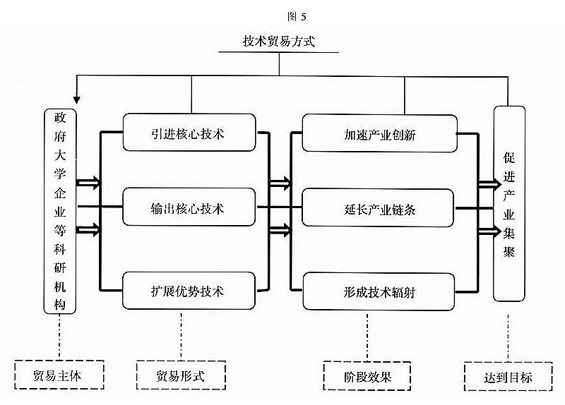 技术贸易方式的实践意义在于以推动产业集群发展为目标,通过引进核心技术和输出核心技术来形成技术辐射,在实现产业创新和延长产业链条的基础上培育产业集群。