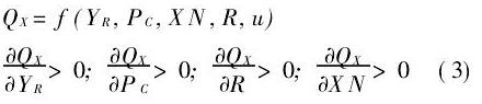 lnQX=1.424lnYR-0.452lnPC,-0.163lnR,+0.61lnXN (7)