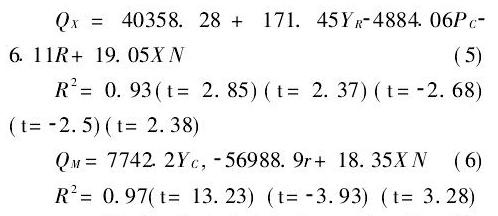 lnQM=1.823lnYC,-0.09lnr+0.36lnXN (8)