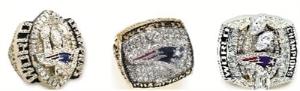 新英格兰爱国者队曾获的冠军戒指。