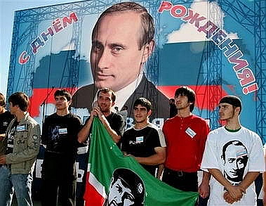 在车臣首府格罗兹尼,数千青年人集会庆祝普京生日。青年们身穿印有普京头像的短衫,在写有“生日快乐”字样的普京大幅画像前挥舞写着“健康、快乐、成功”的旗帜。