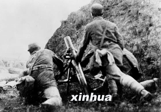 图为“百团大战”中我军炮击敌碉堡。 新华社发