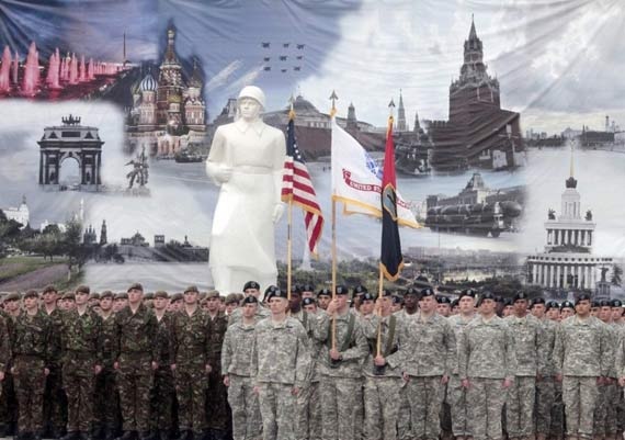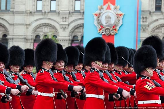 此次参阅的俄罗斯军人总数为1.05万人,独联体和反法西斯盟国军队总数约为1000人,从整体表现来看,参阅外国军人表现中规中距,令人满意。按照事先安排,首先出场的外国军队是独联体成员国阅兵分队,按俄语字母顺序依次是阿塞拜疆、亚美尼亚、白俄罗斯、哈萨克斯坦、吉尔吉斯斯坦、摩尔多瓦、塔吉克斯坦、乌克兰军人,各一个连。尽管阿塞拜疆和亚美尼亚两国矛盾不断,关系并不友好,但是两国军人相处融洽,并排走在队伍的前列,没有出现任何问题。随后出场的是反希特勒同盟成员国阅兵分队,波兰仪仗队连走在前面,英国、美国和法国军人紧随其后。尽管有许多人担心外国军人,特别是西方国家的军人可能很难适应俄罗斯的阅兵步法,但是实际上他们在彩排时展示了较高的队列素养,行进中的表现无可挑剔。最后是土库曼斯坦仪仗队连,连长骑着一匹11岁的白马走在前面,这匹马正是1945年6月24日苏联元帅朱可夫在红场阅兵时跨下坐骑的直系后裔,但是它受到了阅兵曲的影响,多少有点受惊,一直略微侧身碎步前进,不敢直走。