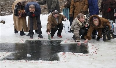 很多信奉东正教的俄罗斯人相信,在该教圣诞节(1月19日)当天所收集的水,都是具有某种神奇魔力的“圣水”。这些水往往都会被大家装在瓶子里,并且留到以后再饮用。由于技术水平和其他因素,俄罗斯境内的自来水,一般来说都是不能直接饮用的。(高轶军)