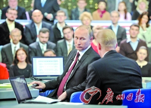 普京15日在电视、广播、网络直播节目中与普通民众直接交流,回答提问。