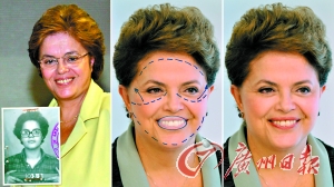 巴西也是整容大国。该国首位女总统罗塞夫以直言、坦率的个性著称,但此前曾被批评“缺乏女性魅力”。据报道,罗塞夫当初为竞选总统,努力柔化自身形象和凸显女性气质。除了改戴隐形眼镜和改变发型,有媒体猜测罗塞夫做了全脸提升手术,打了消除皱纹用的肉毒杆菌,并做了牙齿美容。凭借一系列“脸面功夫”,罗塞夫的形象变得更亲切、和蔼。