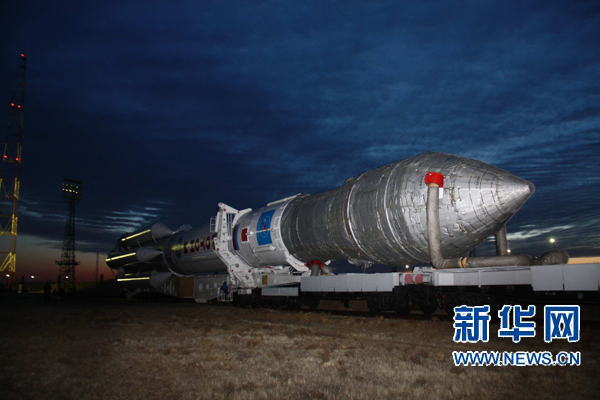 资料图片:这张2010年12月2日拍摄的资料照片显示搭载“格洛纳斯”导航卫星的“质子-M”运载火箭。 俄罗斯2010年12月5日发射的3颗“格洛纳斯”导航卫星未能进入预定轨道。 新华社/法新