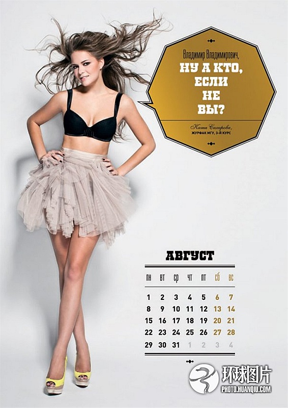 莫斯科女大学生为普京制作的性感“示爱”生日日历。
