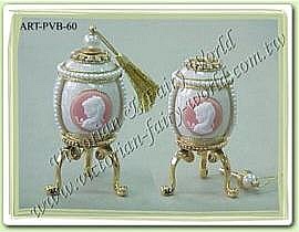 ![]() | 俄羅斯- 鴿蛋 蛋雕 珠寶盒 (粉紅) 粉紅色的外殼加上奧地利水晶以及珍珠,越顯高貴。 |