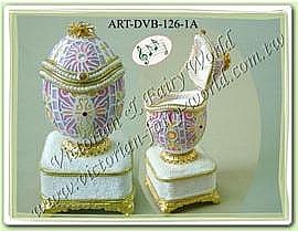 ![]() | 維多利亞風格 鴨蛋 蛋雕 音樂盒 珠寶盒 維多利亞風格的人形圖案,再加上精緻人工花雕,高貴大方。配上旋律優美的音樂,更是讓人愛不釋手。內可放戒指,耳環,...等首飾珠寶。是現在女性必備飾品。 |