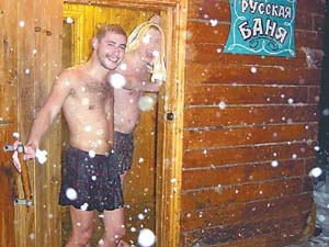 和世界上其他国家不同,俄罗斯的蒸汽浴独具特色:洗澡的时候先用蒸汽熏,然后用白桦树的枝条抽打身体。更为“吓人”的是,在乡村人们习惯在冬天洗浴时赤身裸体跑到室外,在雪地上打几个滚再回到澡堂继续蒸。