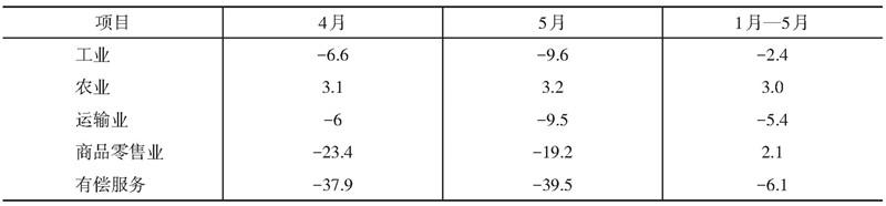 表1 2020年4月—5月俄罗斯宏观经济指标变动情况(同比%)
