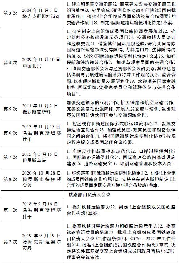 注:* 《上合组织交通部长会议在北京举行 达成八项共识》,http://www.gov.cn/gz ** 《上合组织国际道路运输便利化联合委员会第一次会议在厦门召开 共同推动区域国际道路运输便利化和互联互通合作》,http://www.zgjtb.com/2018-12/14/content_216642.htm