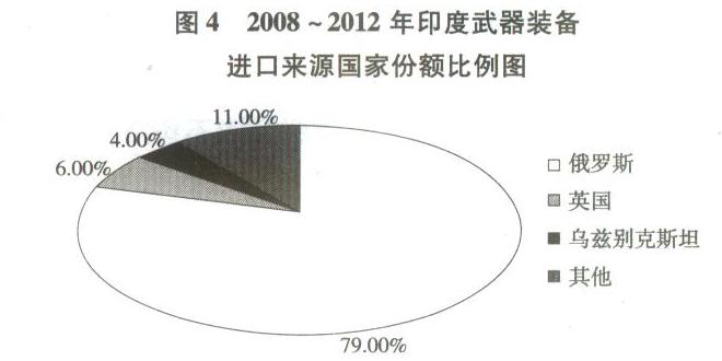 图4 2008~2012年印度武器装备进口来源国家份额比例图