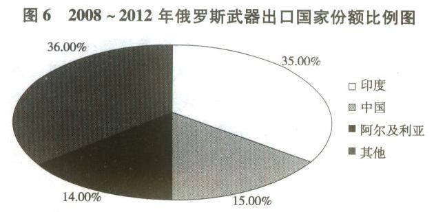 图6 2008~2012年俄罗斯武器出口国家份额比例图