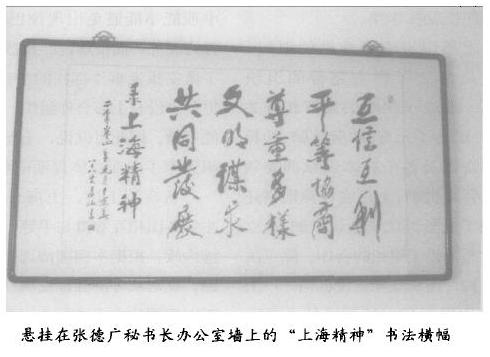 如果说取得了哪些经验,那首先就是“上海精神”(张德广秘书长起身,指着墙上的写着“上海精神”内容的一幅字说),上海合作组织就是按照这个原则建立和发展的—“互信、互利、平等、协商,尊重多样文明,谋求共同发展”。可以说在欧亚地区乃至整个世界,上海合作组织作为一个全面合作的组织,其宗旨、目标、合作领域都是独特的。