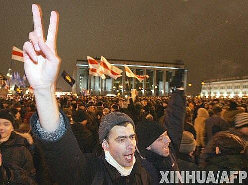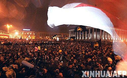 3月19日,白俄罗斯反对派统一总统候选人亚历山大·米林克维奇的支持者在明斯克举行游行。白俄罗斯中央选举委员会主席叶尔莫申娜19日晚宣布,白总统选举投票当天20时结束,截至18时投票率达到87.8%,选举被视为有效。选举初步结果将在当天深夜或20日凌晨公布。新华社/法新