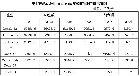 最近几年一部分企业销售及利润有所增长,比如“SA lonel”,“SA Dana”和“SA Tricon”,个别企业如“SA Stil”,SA Balteanca”出现了亏损,主要原因是来料加工利润空间小,企业没有资金进行技术改造和产品的式样更新,2004年列伊升值使服装加工出口企业利润下降,蒙受了一定经济损失,也有个别合资企业由于经营不善,外方撤出投资,使企业利润有所下降。