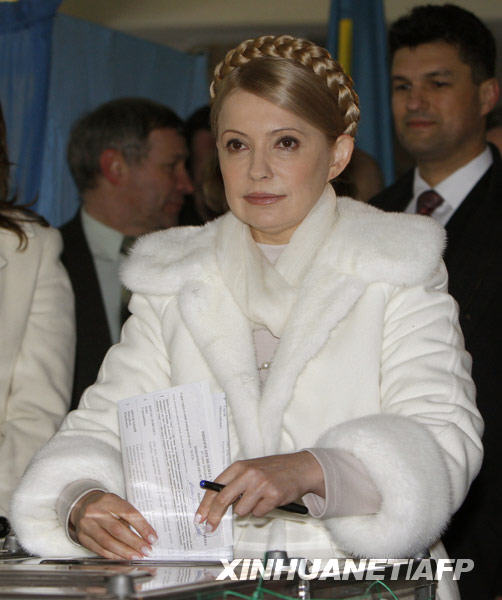 1月17日,在乌克兰第聂伯罗彼得罗夫斯克,乌总理季莫申科在一处投票站投票。新华社/法新