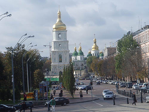 建于11世纪,巴洛克式建筑风格。是智者雅罗斯拉夫为庆祝古罗斯军队战胜突厥佩切涅格人和颂扬基督教而修建的。“索菲亚”是希腊语“智慧”的意思。该教堂建成后,很快成为基辅罗斯的宗教、政治和文化中心。罗斯的大主教住持于此,大公在这里接见外国使节,签订国际条约。现在这里还陈列着许多考古文物和建筑模型,基辅10世纪的全景模型展出了被蒙古侵略者破坏前的基辅市貌。这里还建立了斯拉夫民族的第一个图书馆。