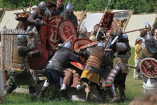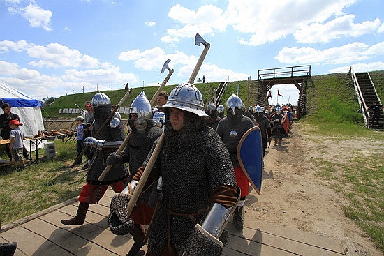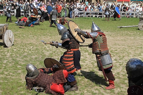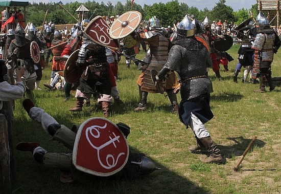 5月22日,在乌克兰基辅郊区举行的基辅罗斯节表演上,演出者再现了十三世纪的基辅罗斯战役历史场面。斯塔拉斯坚科/摄