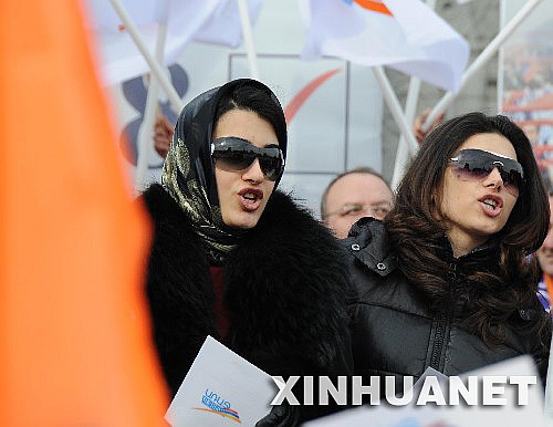 2月17日,在亚美尼亚首都埃里温,两名歌手在总统候选人、现任总理萨尔基相的竞选集会上演唱。亚美尼亚总统选举定于2月19日举行。 新华社记者魏良磊摄