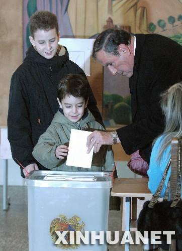 2月19日,亚美尼亚热门总统候选人、前总统列翁·捷尔-彼得罗相在首都埃里温市一处投票站投票。亚美尼亚总统选举投票于当地时间19日8时(北京时间12时)正式开始。亚全国41个选区共设1923个投票站,全国有230万登记选民,投票过程将持续12小时,从9名候选人中选出新的总统。 新华社记者刘洋摄