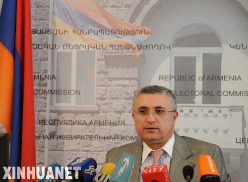 2月20日,在亚美尼亚首都埃里温,亚美尼亚中央选举委员会主席阿扎良在新闻发布会上宣布,对所有选票进行的初步统计结果显示,总统候选人、现任总理萨尔基相以52.86%的得票率领先于其他候选人。选举最终结果将在本月26日之前公布。 新华社记者魏良磊摄