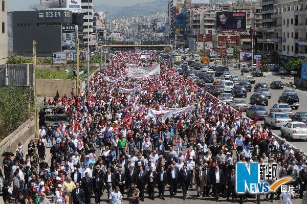 4月24日,亚美尼亚裔黎巴嫩人在黎巴嫩首都贝鲁特举行大规模集会和游行,纪念“亚美尼亚大屠杀”95周年。当天是“亚美尼亚大屠杀”95周年纪念日。亚美尼亚称1915年至1917年土耳其奥斯曼帝国统治时期,150万亚美尼亚人遭到“大屠杀”。土耳其历届政府均否认这是大屠杀事件,并声称死亡数字被夸大。新华社发(科卡摄)