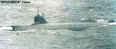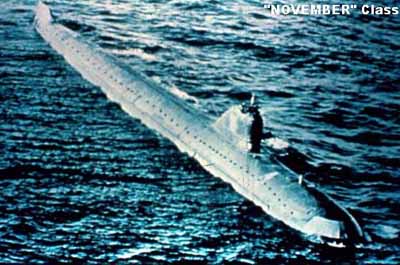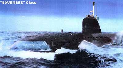 前苏联的十一月级核潜艇(也称N级)首批14艘于1958年~1964年服役。十一月级潜艇是