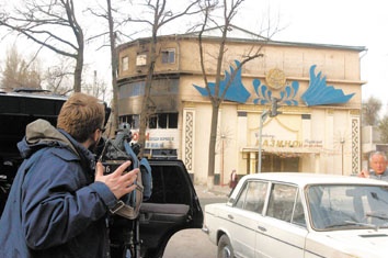 三月二十五日,一名外国记者在吉尔吉斯斯坦首都比什凯克的国英商品城采访。 新华社记者沙达提摄 据新华社比什凯克3月25日电(记者刘洪 王湘江 陈俊锋)太阳终于从浓重的乌云后跃出,吉尔吉斯斯坦首都比什凯克在经历了一整夜的剧烈动荡后,终于在25日上午恢复了暂时的平静。但在许多闹市区,大批民众仍未散去,一些店铺被哄抢后一片狼藉。 24日晚阿卡耶夫政权的突然垮台,使吉尔吉斯斯坦政局急转直下,反对派宣布接管政权。混乱的政局随即使整个社会治安陷入崩溃。一些暴徒当晚洗劫并焚烧了多个大型商贸市场,并和一些维护自己财产的商户发生了冲突。虽然动乱没有造成人员死亡,但整个比什凯克的商业已完全陷入瘫痪。 新华社记者在多个地区看到,大量店铺被洗劫一空,一些商铺里还弥漫着浓重的烧焦气味。中国商品集中的吉尔吉斯斯坦国英商贸城也在大火中被付之一炬。据一些中国商人讲,这次是中国商品在吉损失最大的一次,初步统计将至少损失数百万元人民币。好在应对及时,中国商人没有伤亡情况发生。 记者在比什凯克的多条大街看到,几乎所有店铺都已关门歇业,一些年轻人则还在昨天哄抢场所周围徘徊,并不时从里面搬出一些零碎商品。在有些地段,为防止哄抢事件再次发生,一些首饰店和货币兑换点早已用钢条将整个门框焊死。 一名叫埃利扎的药房营业员告诉记者,她们现在都不敢出门,即使患者来买药,他们都是隔着铁门进行交易。埃利扎说:“现在太危险了,没有警察,谁来保卫我们的安全?” 局势的失控,使一些吉反对派领导人也感到有些焦急。一位叫诺尔曼的反对派领导人表示,胜利确实有些太突然了,他们现在也不知道怎么稳住混乱局面。在25日的多个集会场所,反对派领导人纷纷呼吁民众保持克制,不要让暴力危及到整个国家的安定。 |