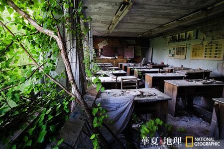 一棵树生长在普里皮亚季这所废弃于20年前的学校里。大自然正在缓慢地拆除这座城市;同时,动植物也在切尔诺贝利的疏散区里欣欣向荣。那些从世上最严重的核事故中生还的人们,依然过着为恐惧所苦的生活。相形之下,这里虽然一片萧条,却充满了希望。