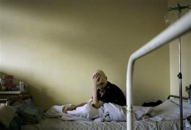 中新网4月24日电 据路透社报道,4月26日是切尔诺贝利核泄漏事故20周年纪念日,乌克兰和白俄罗斯都将举行各种形式的纪念活动,以此悼念在那次严重事故中遇难的人们。图为因核辐射而患上癌症的7岁小患者。(春风)