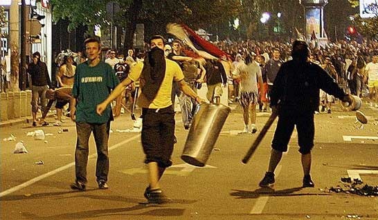 29日晚的抗议集会吸引约2万人,这一人数比组织者所希望的少。100名据信是贝尔格莱德红星足球俱乐部支持者随后离开抗议集会人群,他们向防暴警察扔砖头、炮竹,警方则用催泪弹和橡皮子弹进行反击。贝尔格莱德市中心很快变成一个垃圾场,街上到处都是玻璃和其它垃圾,40余人在冲突中受伤,其中包括一名西班牙摄影师。