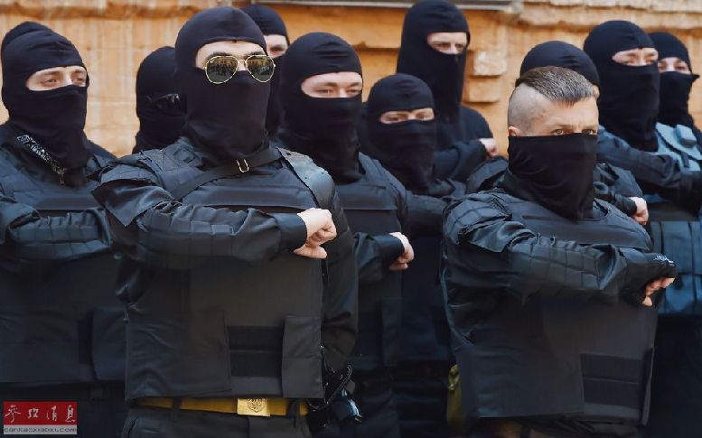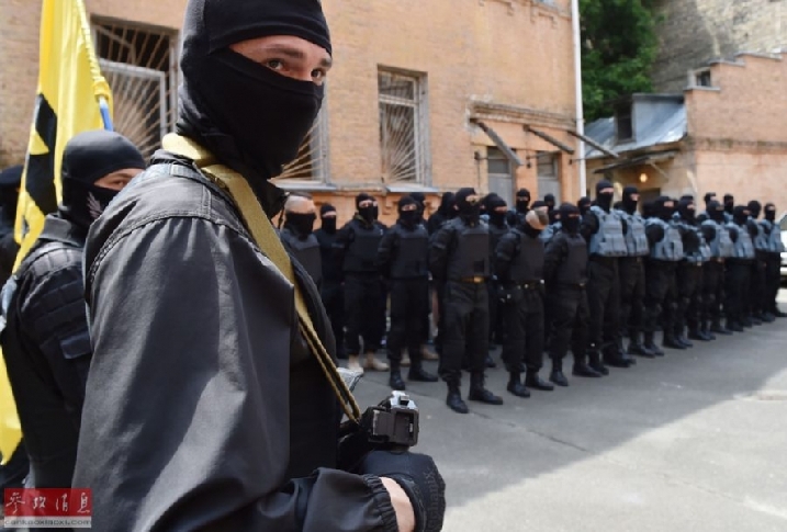6月3日,在乌克兰基辅,40名乌克兰社会国家大会党以及极右党派成员宣誓加入志愿部队,并与乌克兰军队一同参加反恐训练。