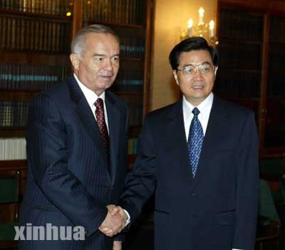 5月29日,正在莫斯科出席上海合作组织成员国元首第三次会晤的中国国家主席胡锦涛会见乌兹别克斯坦总统卡里莫夫。