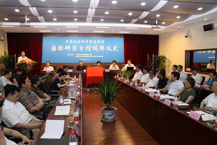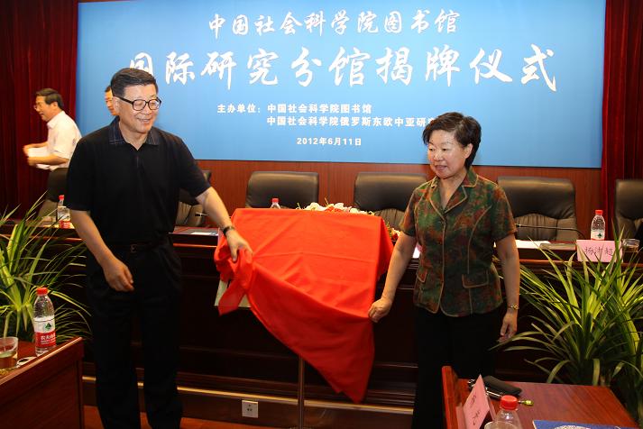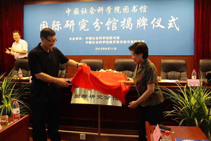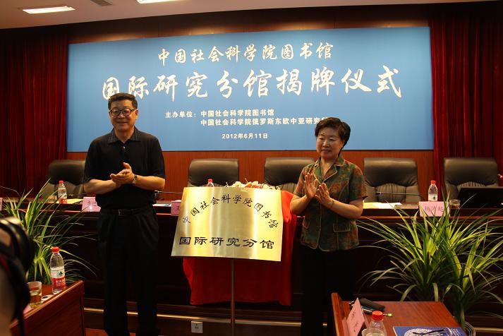 2012年6月11日,中国社会科学院图书馆国际研究分馆开馆揭牌仪式在我所举行,王伟光常务副院长、武寅副院长出席仪式并为国际研究分馆揭牌,俄罗斯东欧中亚研究所党委书记李进峰、院图书馆馆长杨佩超、美国所党委书记孙海泉分别代表本单位发言,国际研究分馆馆长孙力主持揭牌仪式。