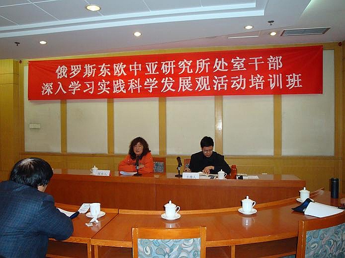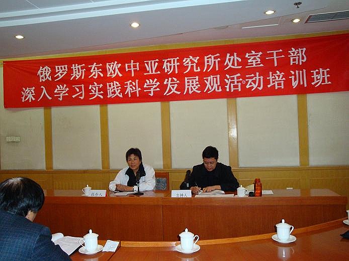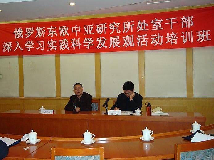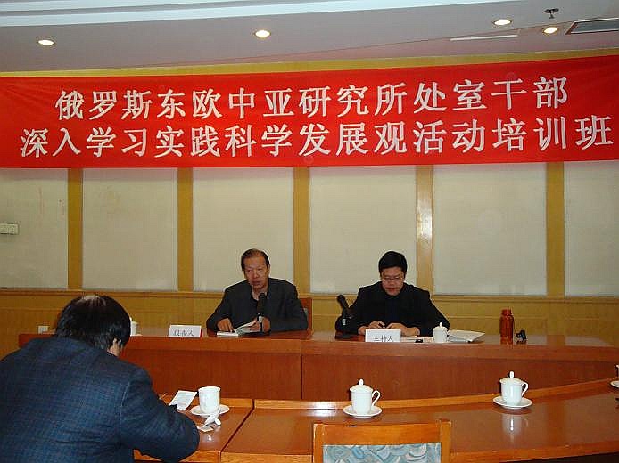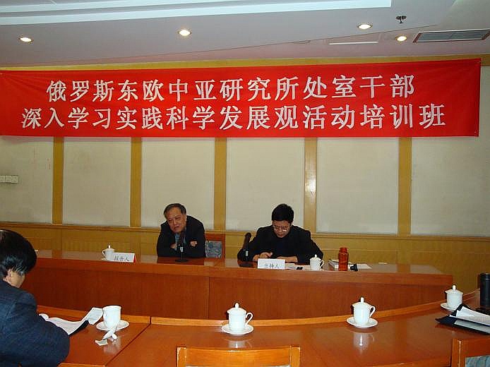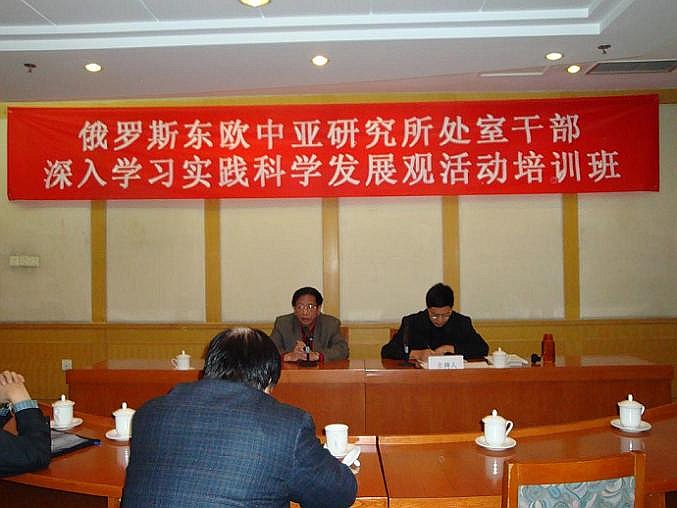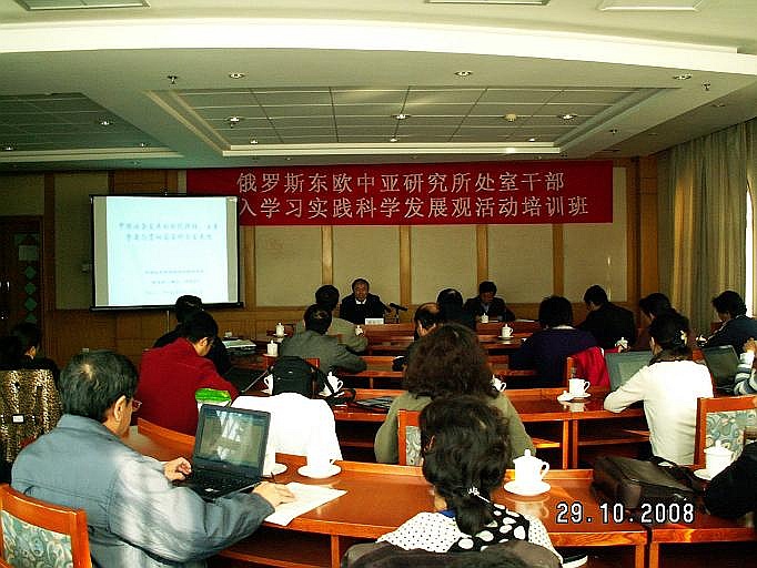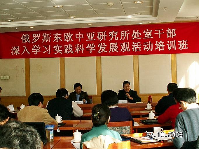 2008年10月27日-30日 所党委举办全所处以上干部、党支部书记、副书记深入学习实践科学发展观活动培训班,重点学习了胡锦涛总书记等中央领导讲话、以及院领导有关学习实践科学发展观活动的动员、辅导报告;听取了所长邢广程和社会学所副所长陈光金学习辅导报告。围绕理论创新、机制创新,从科学发展观角度对学科建设和全所工作中存在的问题和发展方向进行了深入的讨论。党委书记孟庆海对培训活动作了动员和总结。