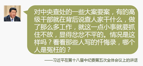 ·对中央查处的一些大案要案,有的高级干部就在背后说查人家干什么,做了那么多工作,就这一点小事就要抓住不放,显得忿忿不平的。情况是这样吗?看看那些人写的忏悔录,哪个人是冤枉的?虽然这只是不负责任地传播消息、发表议论,也不是在正式场合说的,但其腐蚀性、涣散性也是非常严重的。