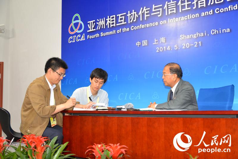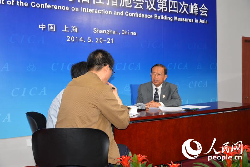老挝外交部副部长本格·桑宋萨接受人民网记者采访(裴广江、张梦旭、赵成摄)