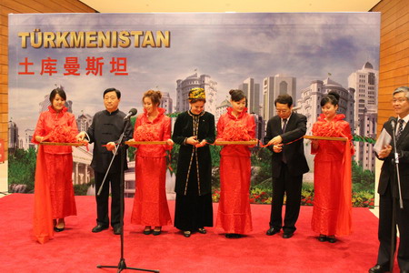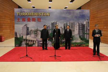 2011年11月22日下午,程国平副部长与土库曼斯坦副总理亚兹穆哈梅多娃在国家博物馆共同出席土库曼斯坦民族工艺品展开幕式并致辞。