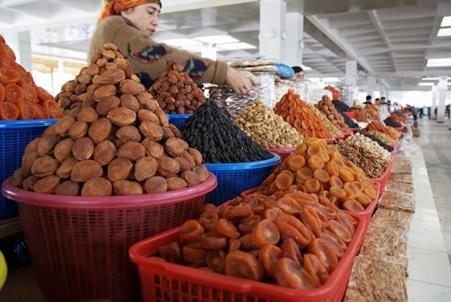 迄今为止,今年秋季塔什干粮食市场价格的确惊人地稳定,而且就价格水平而言,实际月均收入约150美元的国人完全可以承受。集市摊点上土豆、葱、西红柿、茄子、苹果多的是,每公斤价格都不高于0.3-0.7美元,看上去很诱人。其它浆果和葡萄要贵一些,但也在可接受范围内,这样外地来客的就能十分公正地得出结论:也许,在危机正烈时,今天在其它任何一个独联体国家中都见不到这种现象了。然而购买者并不多。早从八月起,大部分城市居民,首先是预算内居民,都已被强制性不是部分地、而是全额用银行卡领工资了。销售点的摊点数量也已增加。然而市场上蔬菜小贩的日子都并不好过。在超市同样的蔬菜和水果价格要高20-30%。市场上的人们也会闪过这样的念头——这是一个使人有慌乱而非可笑感觉的集市。似乎这也无可厚非……卖方的感觉更肯定,他们更恐慌。目前被放在乌兹别克斯坦政府反危机模式展示柜中的这很大一部分收成,有变质和白白腐烂的危险。