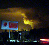 据当地警察和居民讲述:昨天晚上11点左右,该军火库直升机训练场首先着火。着火原因目前还不清楚,初步断定为恐怖行动或日常生活引起的。