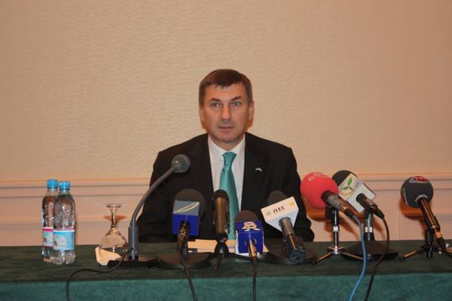 爱沙尼亚总理安西普11月2日在塔什干五洲大酒店举行记者招待会,介绍他访问乌兹别克斯坦的情况,并回答了记者的提问。