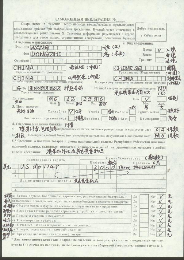 特别提示!入境时应如实填写所携带的外币数额,如所填写的数额与实际携带的外币数额不符,会有被没收的危险! 4,