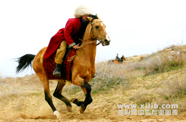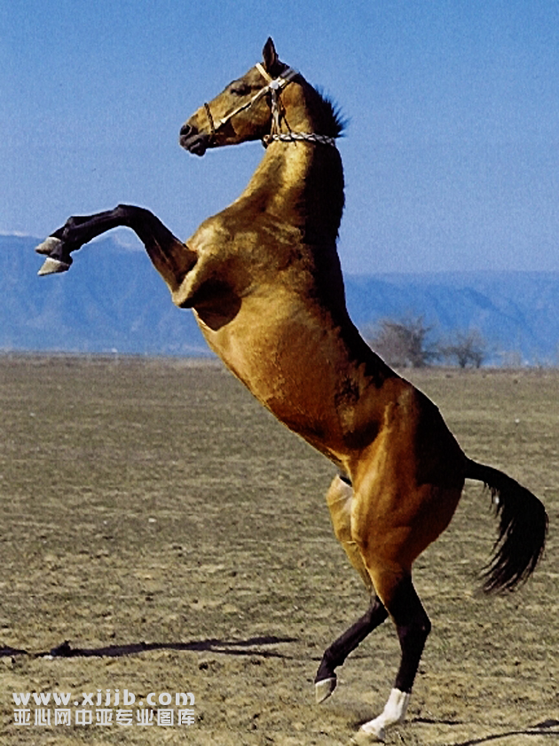 阿哈尔捷金”马至今已有三千多年历史,是世界上最神秘也是最古老的马种之一。原产自土库曼斯坦科佩特山脉和卡拉库姆沙漠间的阿哈尔绿洲。古时候,这种马由土库曼人祖先的一支名为“捷金”的部落驯养,因此这种马被称为“阿哈尔捷金”马,常见的毛色有淡金、枣红、银白及黑色等,属热血马。它体形轻细优美、全身密生长毛,有弯曲的颈部和特有的伸长高举步法,彰显高贵气质。